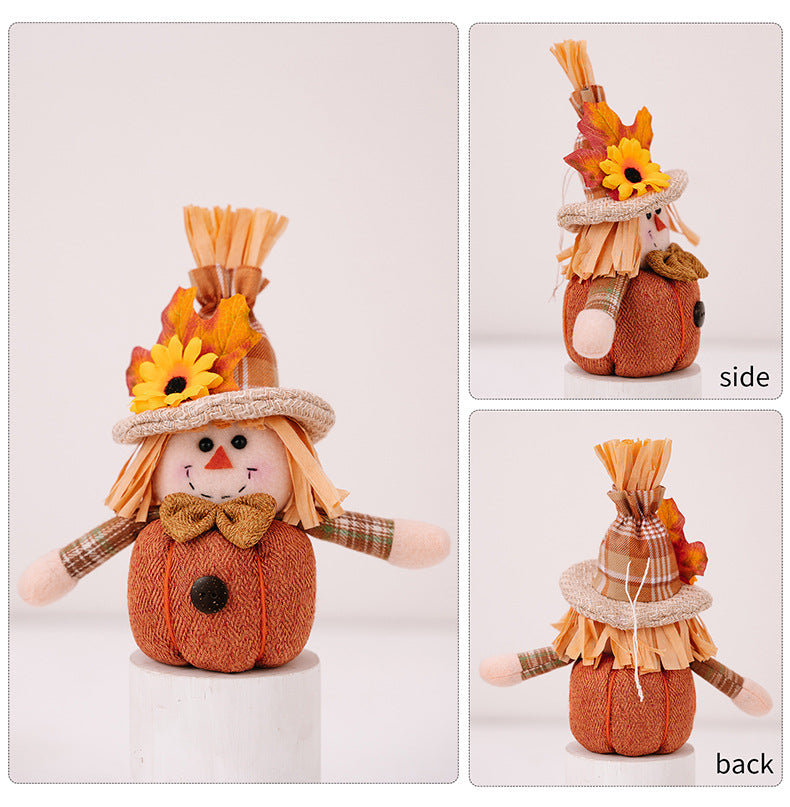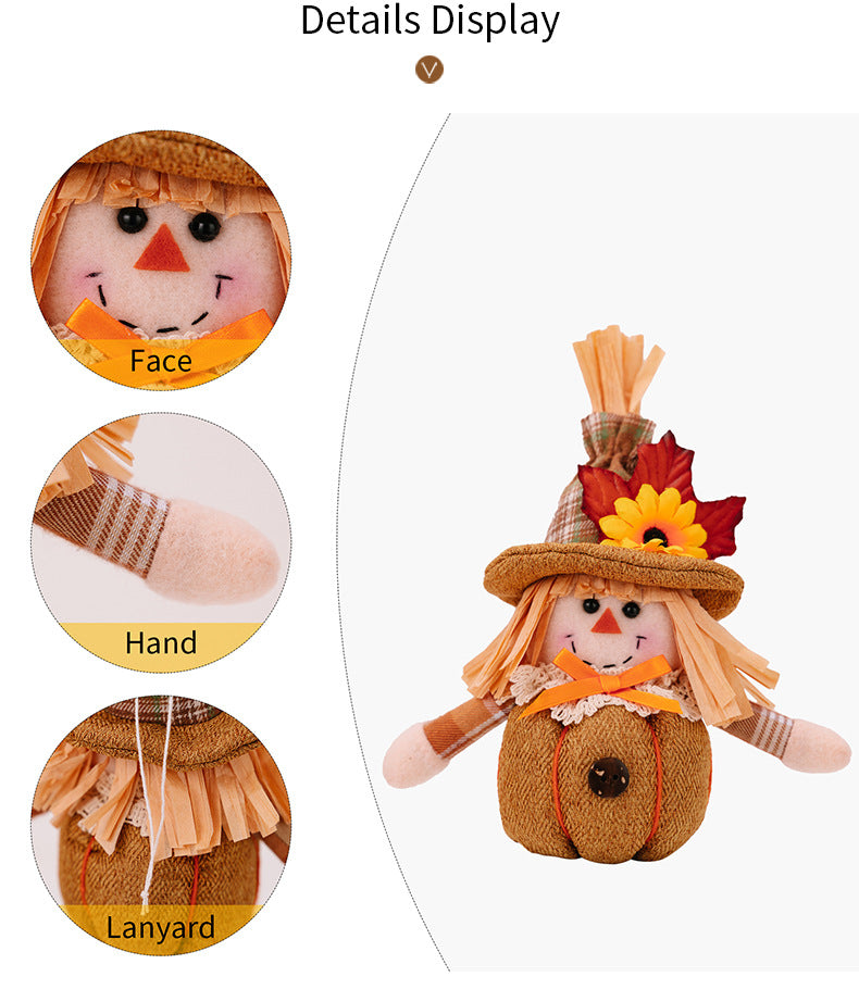 2PCS Cute Pumpkin Strawman Doll for Thanksgiving Decorations Sunflower Maple Hangings Tabletop Ornaments Fall Home Decor Harvest Festival Pendants Gifts