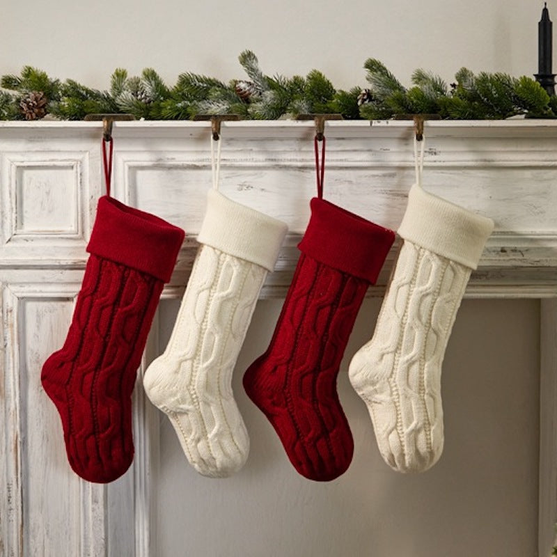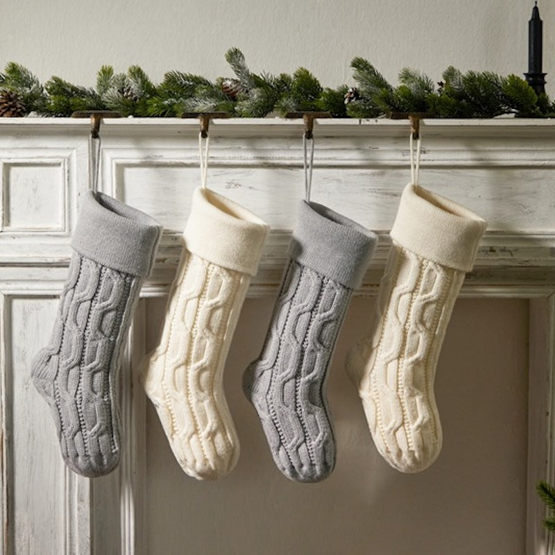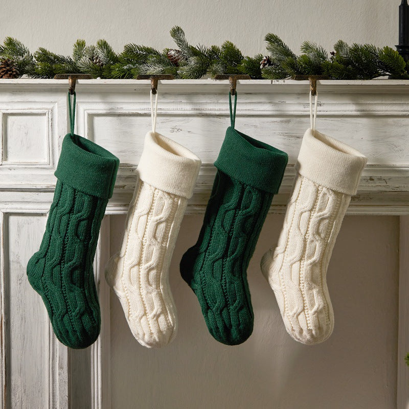 This 18" Knitted Christmas stocking adds a cozy touch to your holiday decor. The S-shaped twist socks create a unique and festive look, perfect for holding small gifts or treats. Made with soft material, this hanging ornament doubles as a candy bag. Spread the holiday cheer with this charming addition to any Christmas party or home decor.