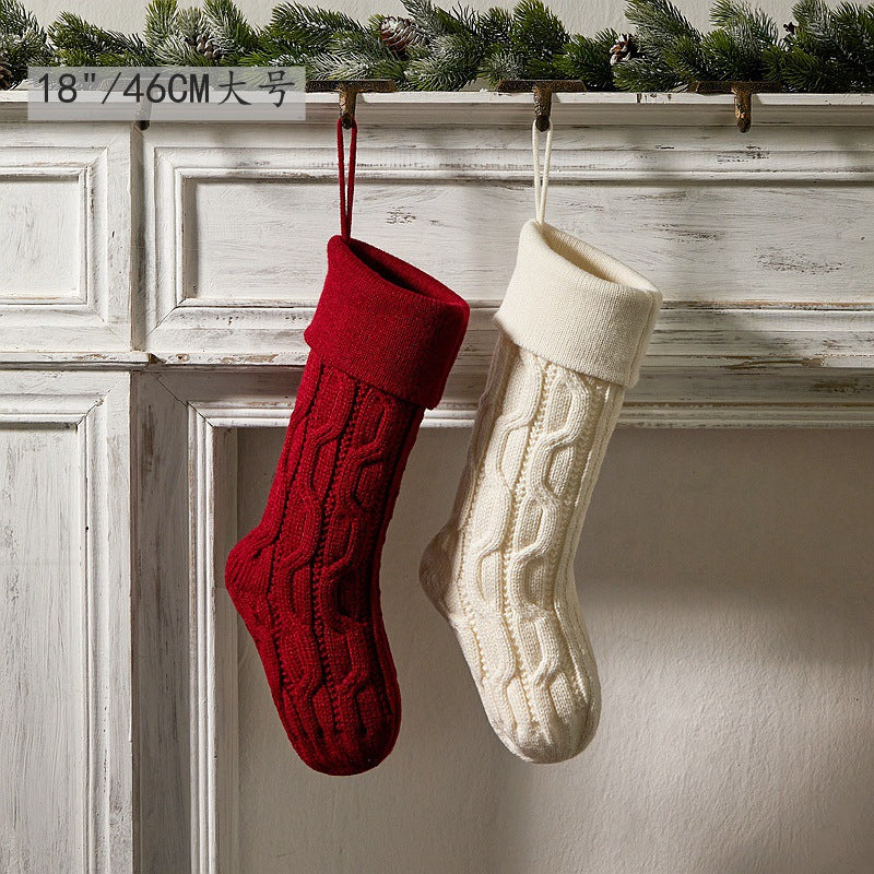 18" Large Knitted Christmas Stocking Gift Bag S-shaped Twist Socks Xmas Party Decorations Hanging Ornament Candy Bag