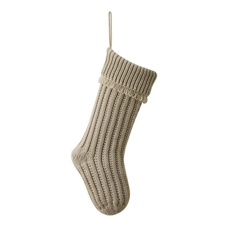 Add a touch of charm to your holiday decor with this Tassel Christmas Stocking. Made of knitted fabric, this stocking features a festive tassel design, perfect for holding holiday treats and small gifts. Hang it on your tree or fireplace for a cozy and elegant Christmas touch.
