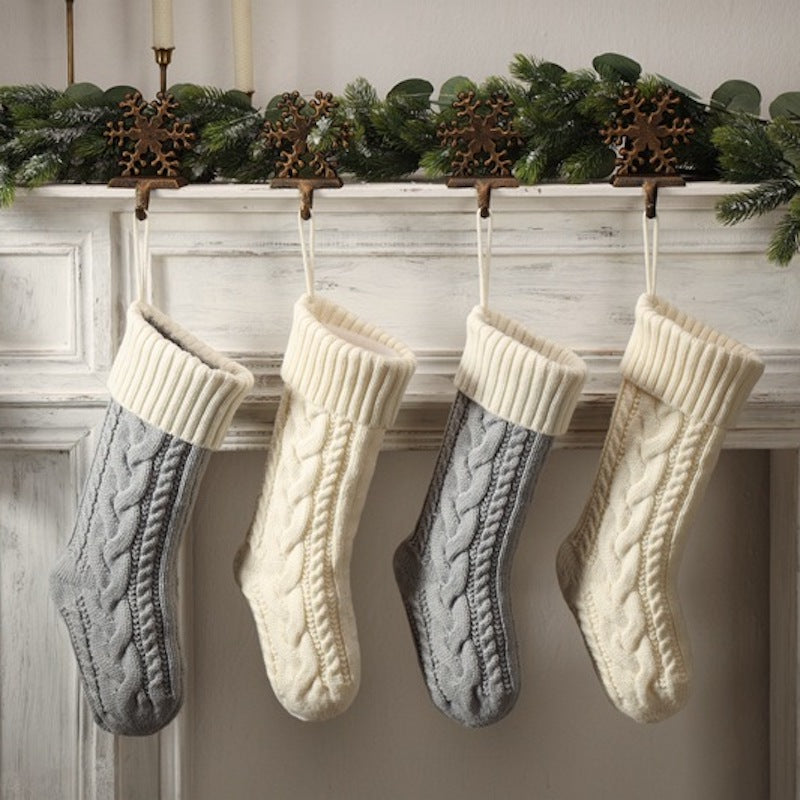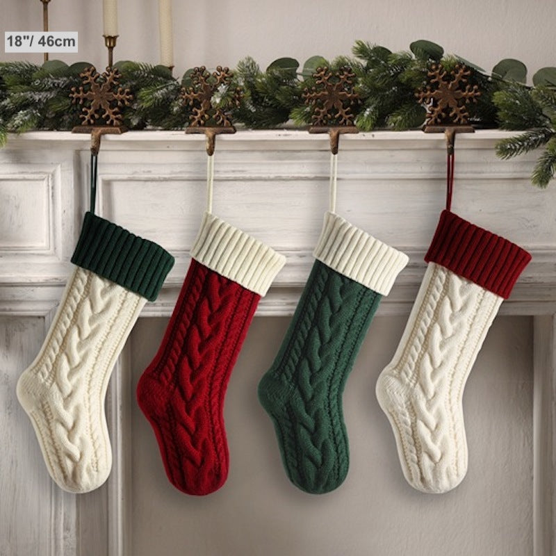 18in Christmas Stocking Decorations Knitted Twist Large Gift Bag Xmas Tree Hanging Ornaments Holiday Home Decor
