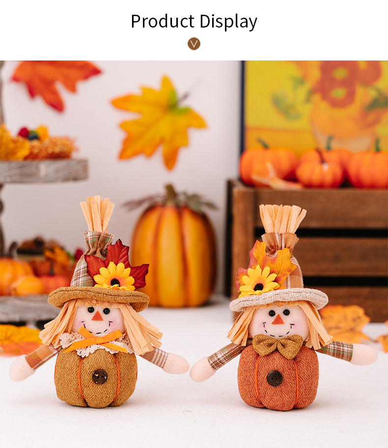 2PCS Cute Pumpkin Strawman Doll for Thanksgiving Decorations Sunflower Maple Hangings Tabletop Ornaments Fall Home Decor Harvest Festival Pendants Gifts