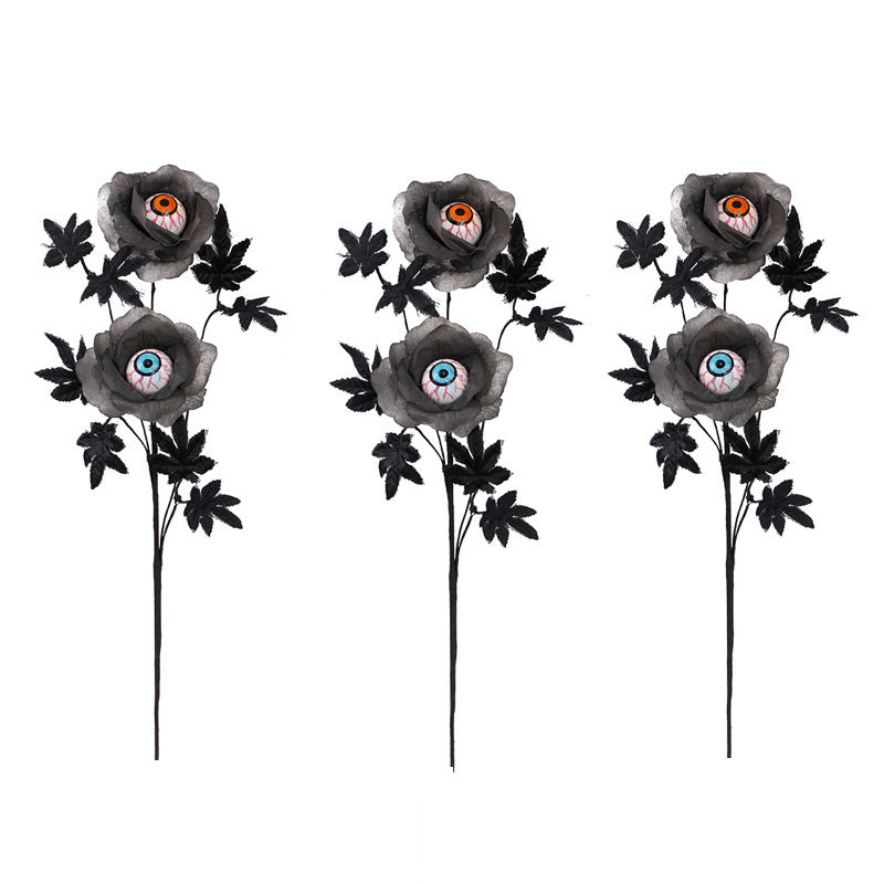 3PCS Maple Leaf Branch Scary Eyeball Halloween Decorations Flower Arrangement DIY Bouquet Home Ornament Holiday Decor