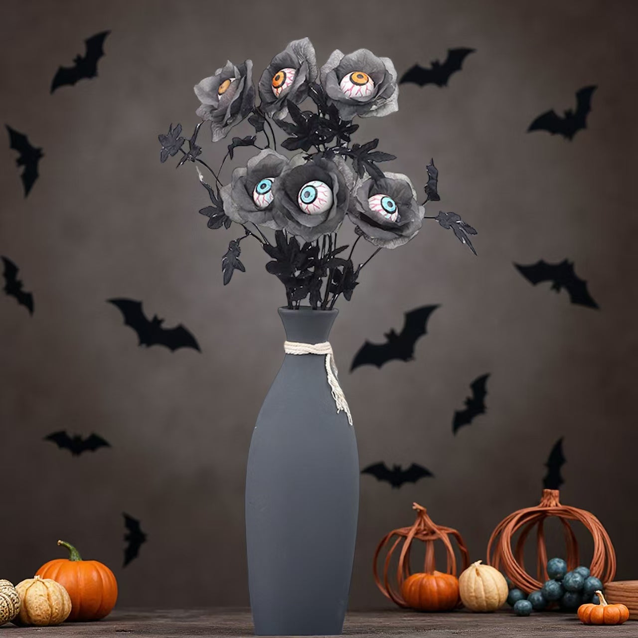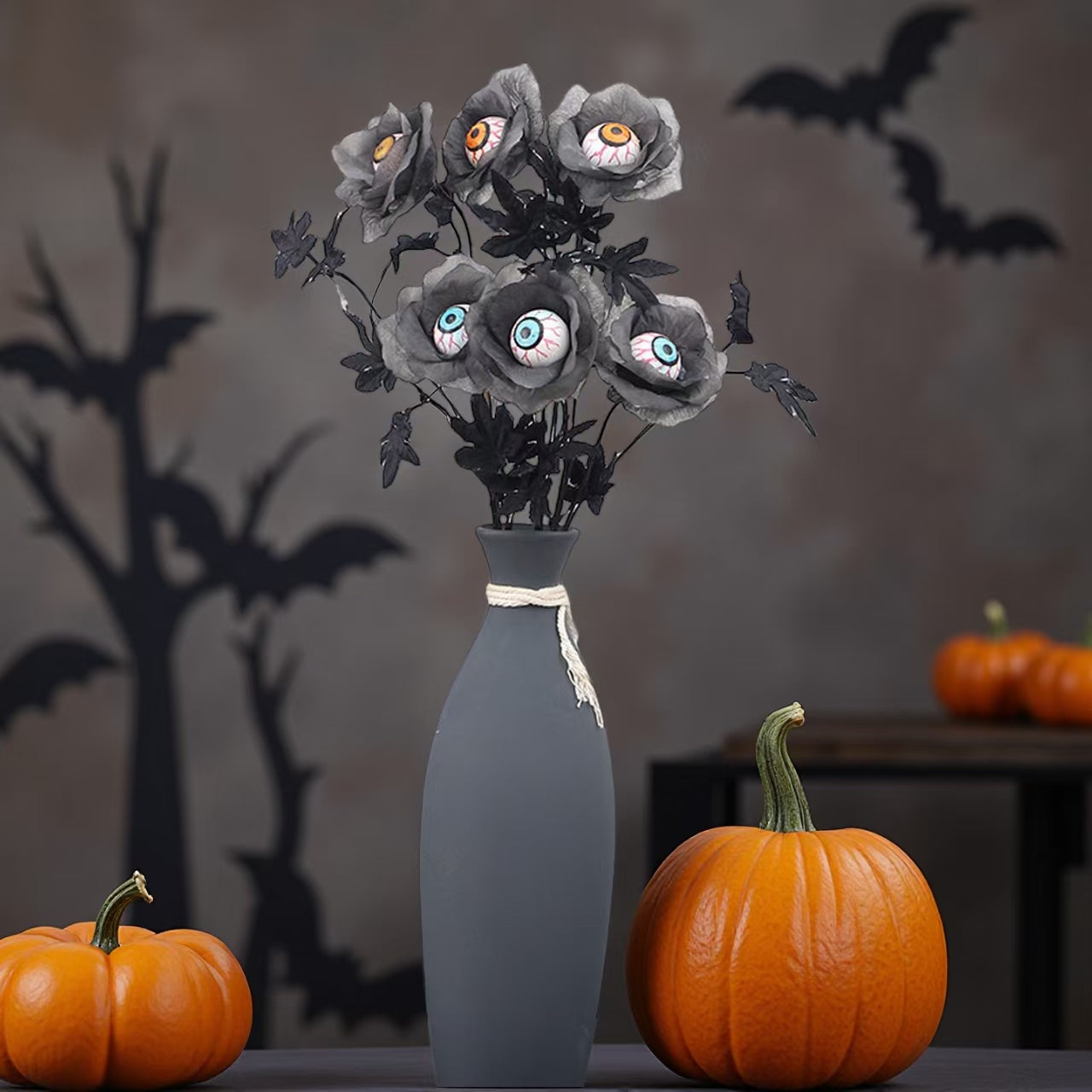 Enhance your Halloween décor with this set of 3 maple leaf branches featuring eerie eyeball accents. Perfect for DIY bouquets or floral arrangements, these spooky elements add a chilling touch to your holiday decorations. Crafted to blend natural autumn vibes with a scary twist, they bring a unique and expert-level detail to your home ornament collection. Ideal for creating a haunting atmosphere that impresses guests and elevates your seasonal styling.