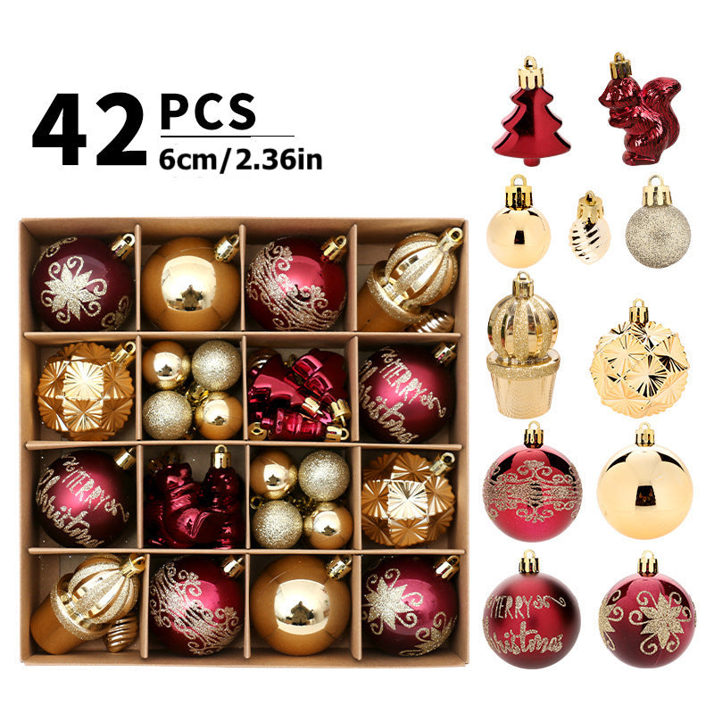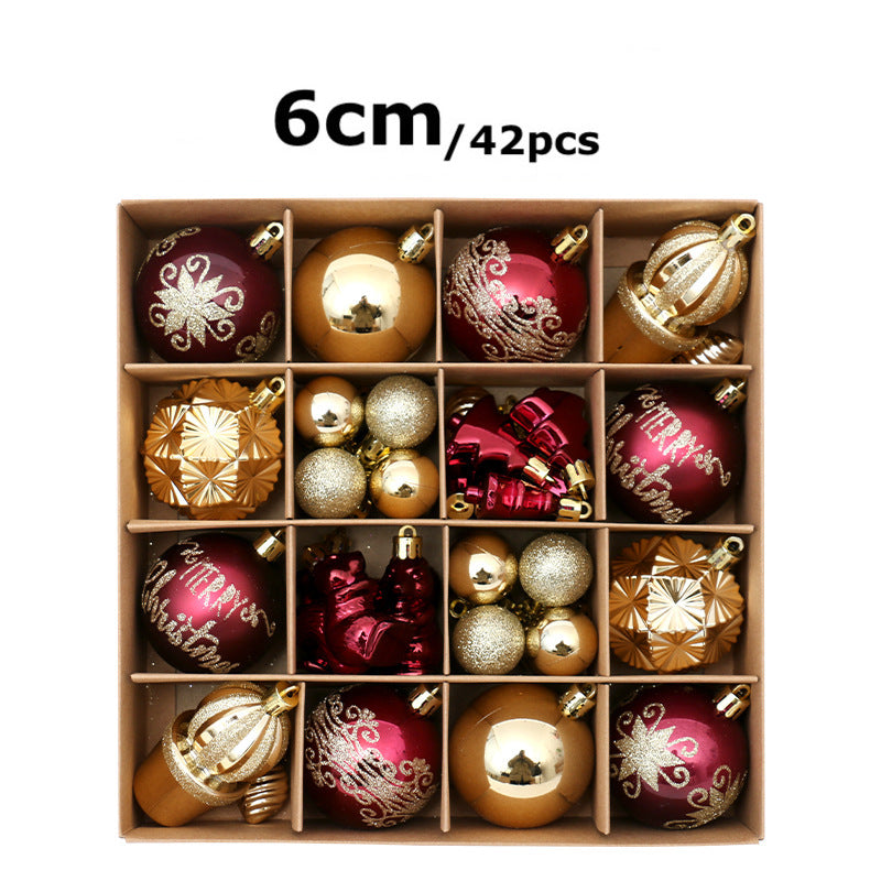 42PCS Christmas Decorations Painted Christmas Ball Set Wine Red Golden Baubles Xmas Tree Hanging Ornaments Festive Party Home Decor