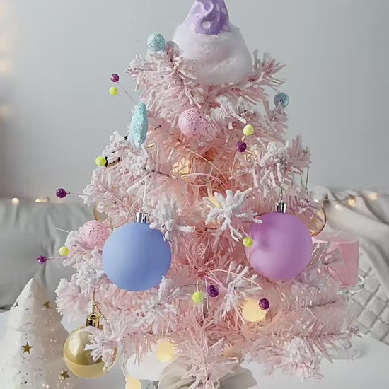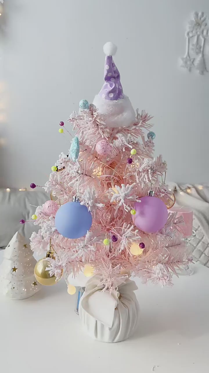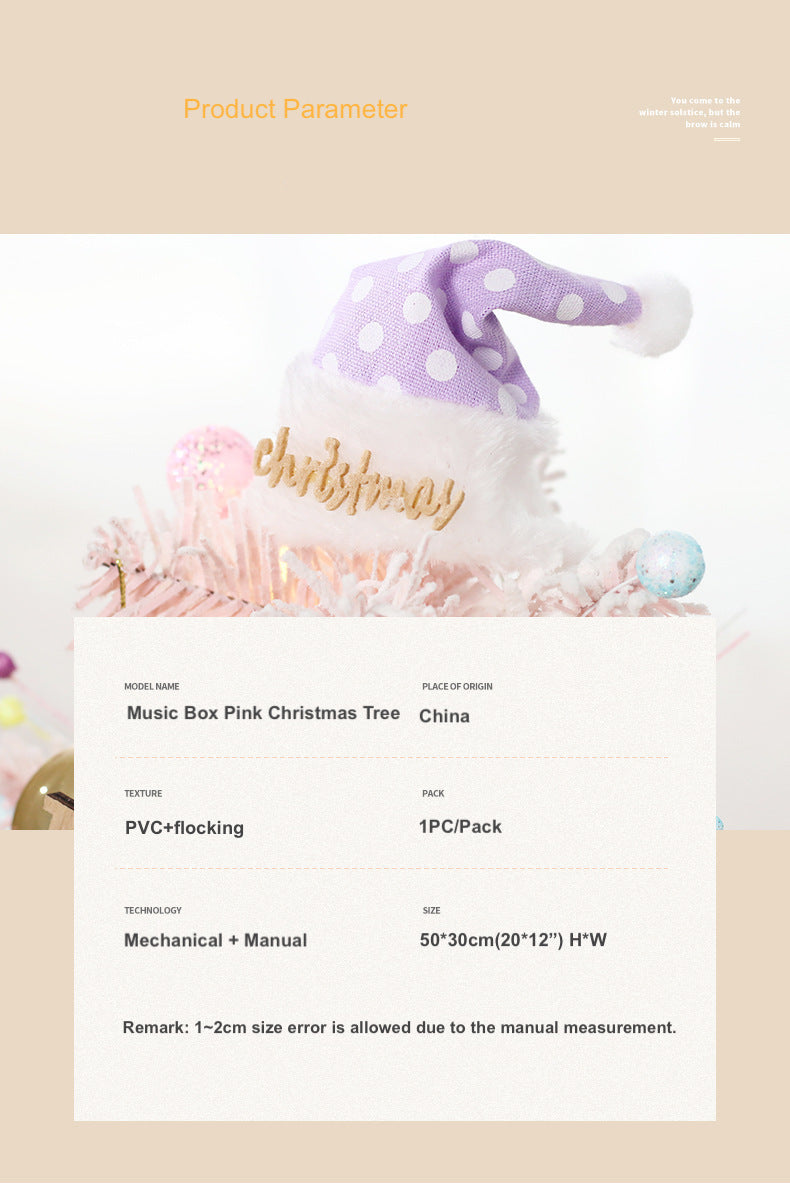 Christmas Decorations Pink Mini Christmas Tree Rotating with Music Box Tabletop Ornaments 50cm/20in