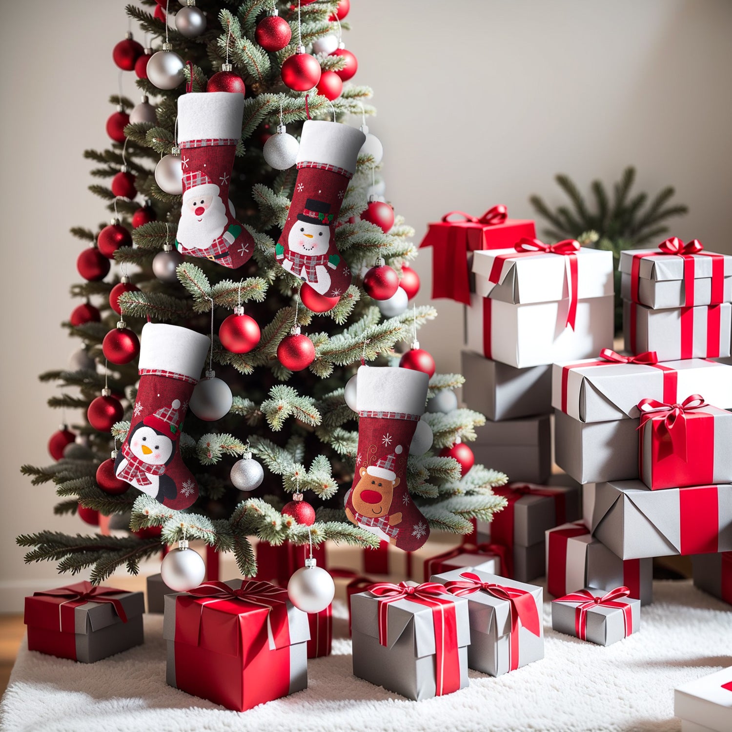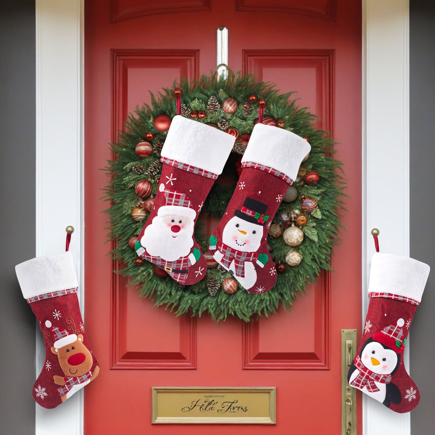 Embroider Christmas Stocking Xmas Tree Fireplace Hanging Ornaments Large Gift Bag Wreath Door Decorations