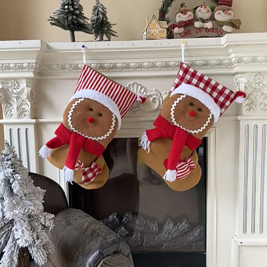 Christmas Stocking Gingerman Gift Bag Red White Plaid Gingerbread Man Candy Bag Strip Hanging Ornaments Xmas Tree Pendants Decorations Home Holiday Party Decor