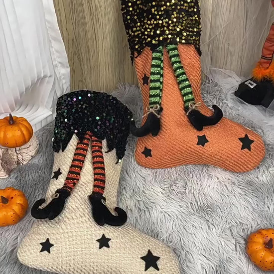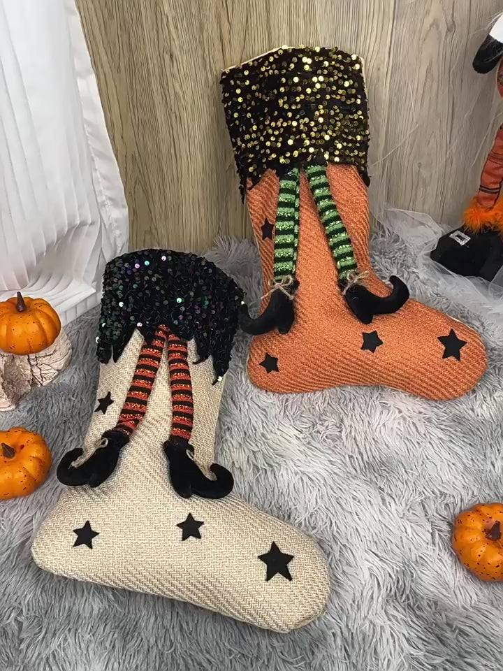 Halloween Decorations Sequin Long Leg Stocking Large Gift Bag Hanging Ornaments for Party Home Decor