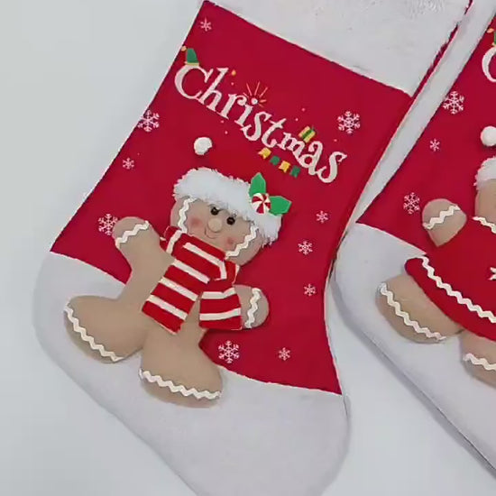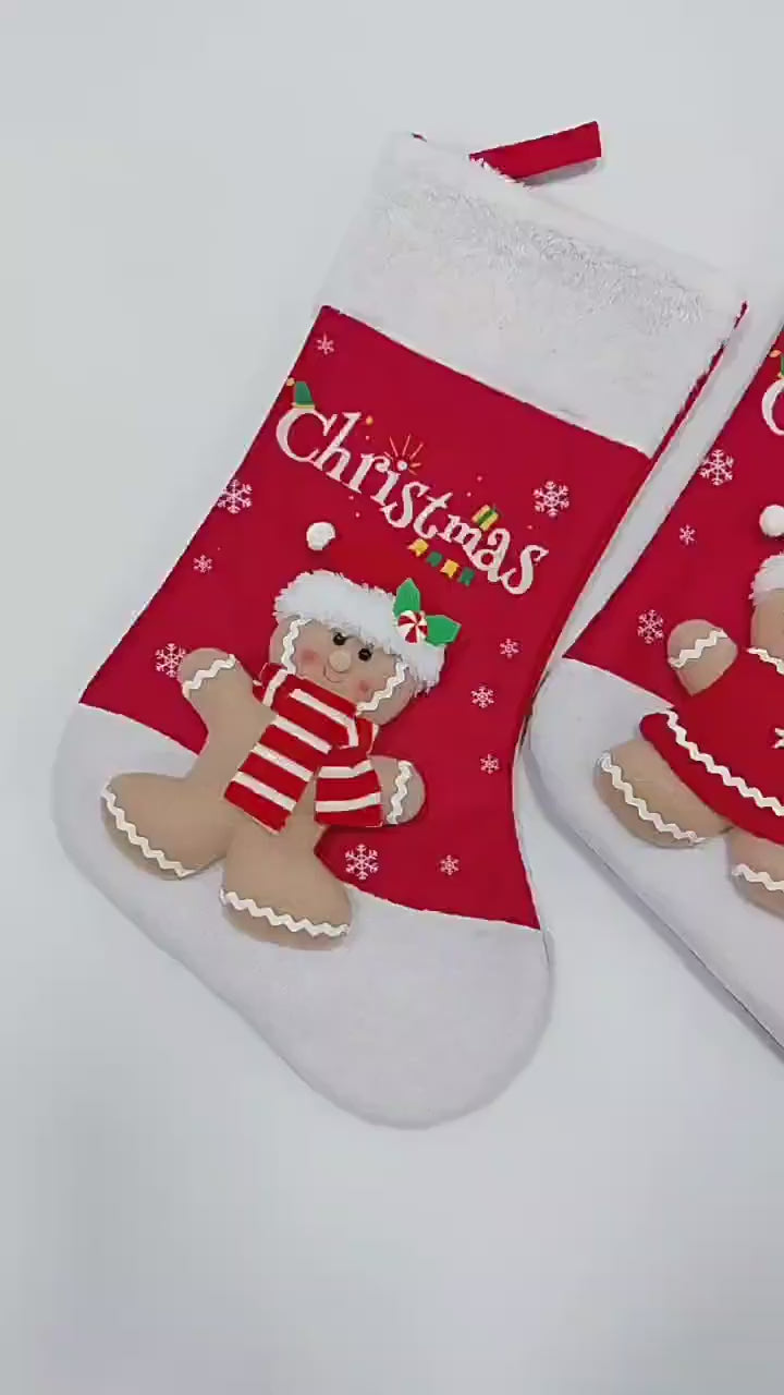 Gingerbread Man Christmas Stocking Large Gift Bag Santa Hanging Ornaments Snowman Candy Bag Xmas Tree Pendants Holiday Party Decor