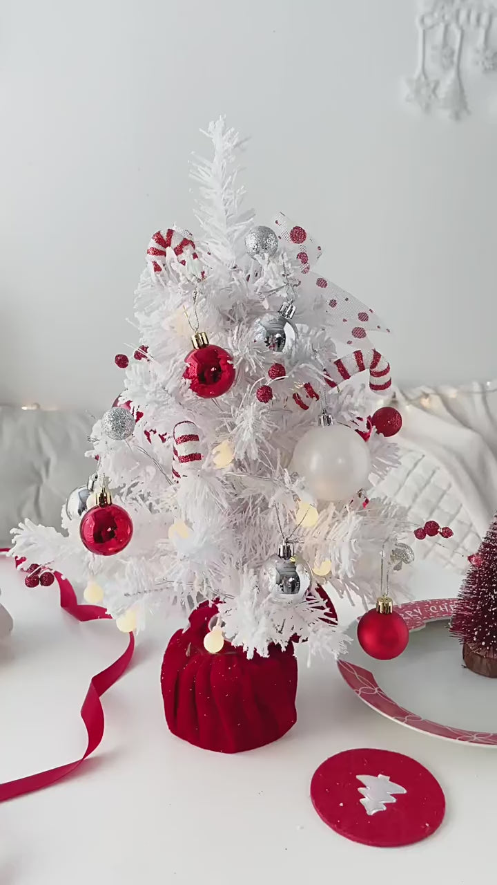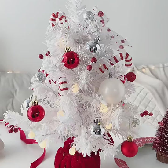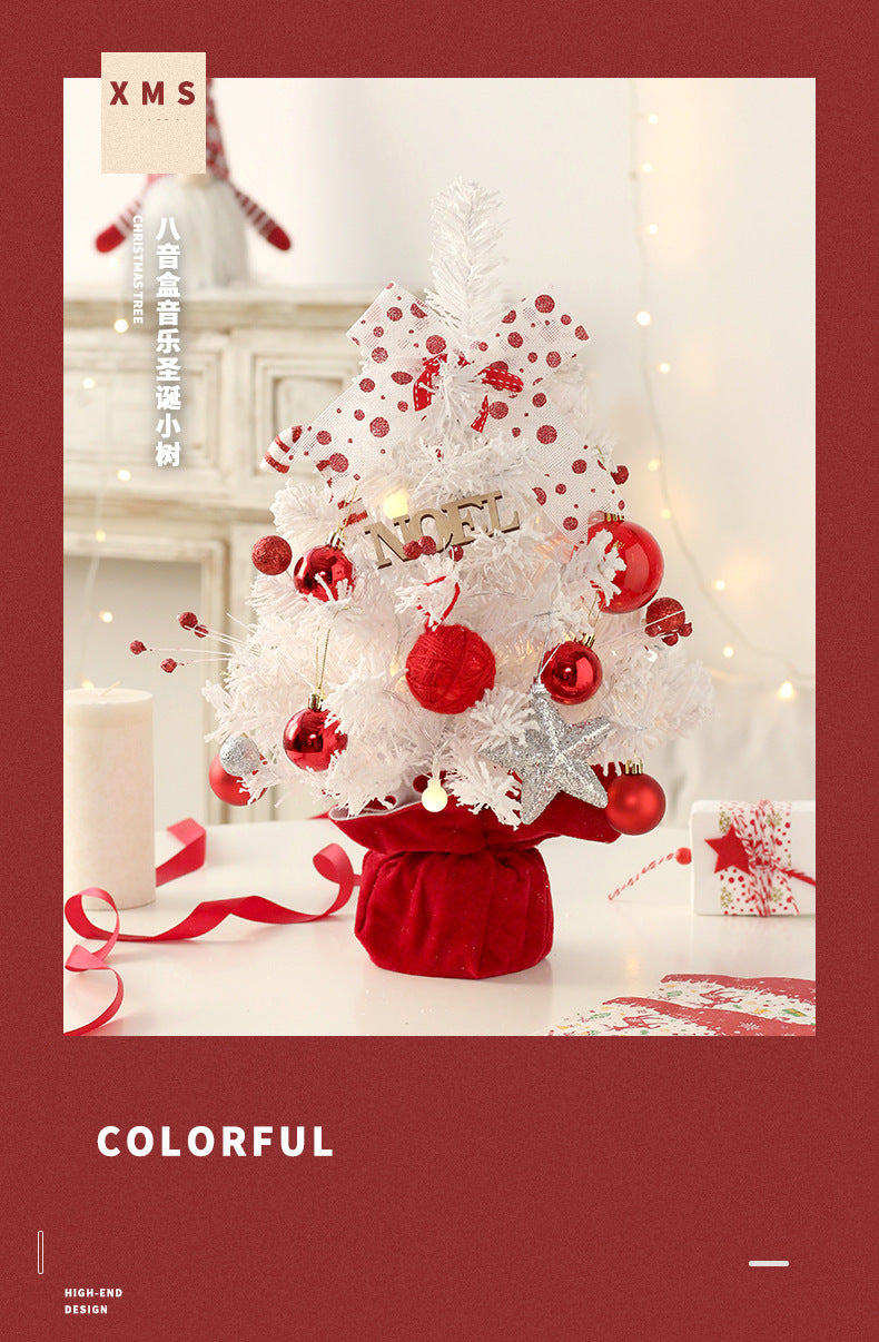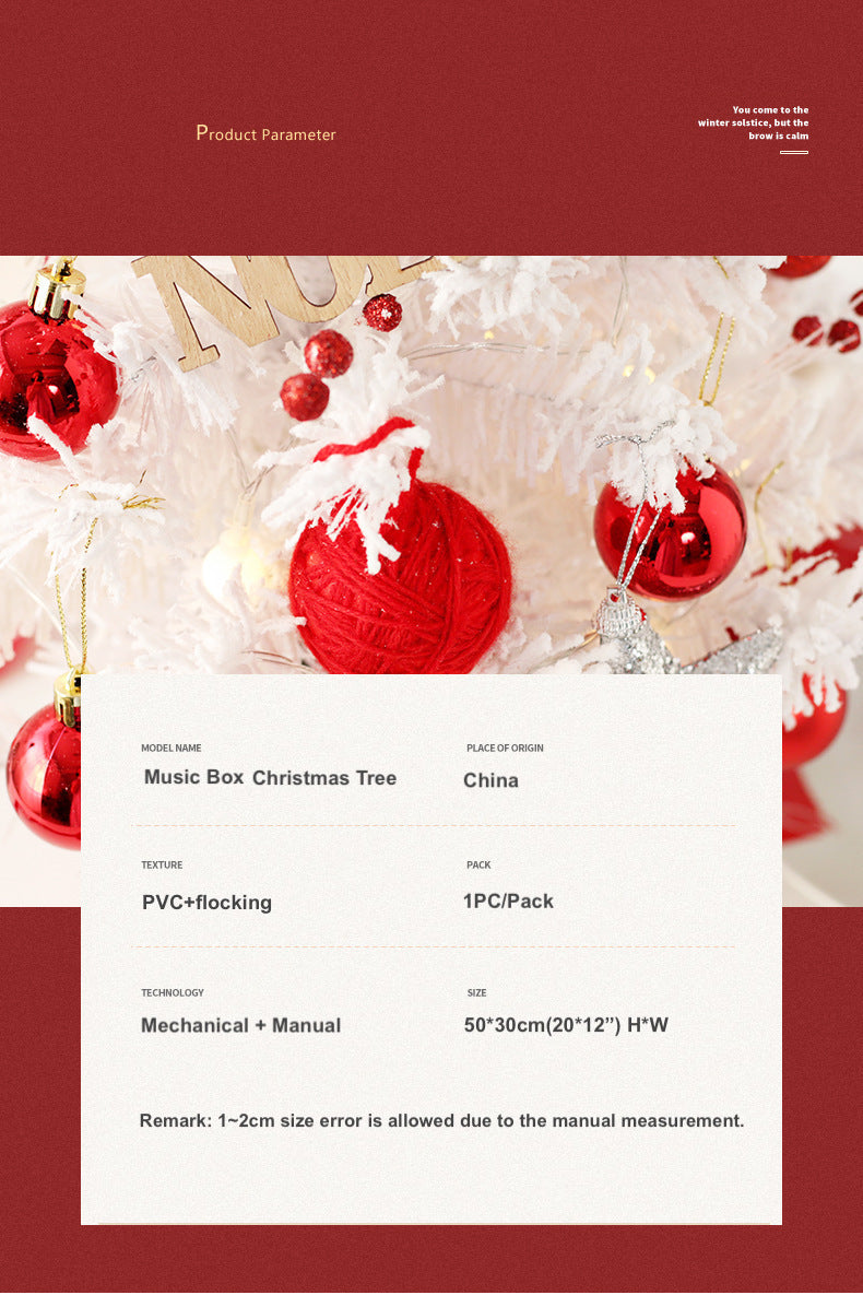 Mini Christmas Tree Tabletop Rotating Music Box Xmas Tree Christmas Decoration Red White Ornaments 50cm 20in