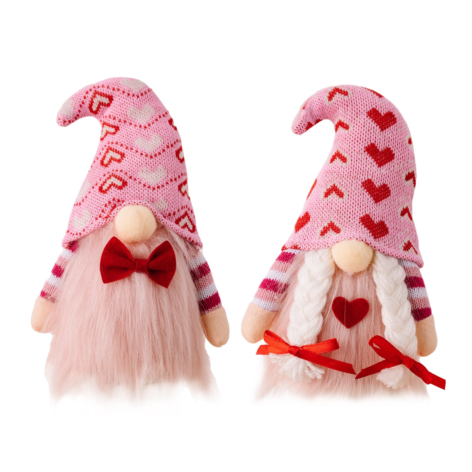 Valentine's Day Decorations Pink Knitted Heart Gnome Ornament Plush Couple Doll Gifts