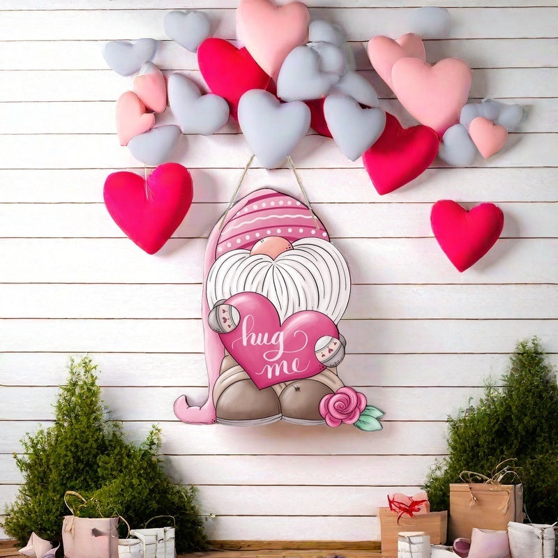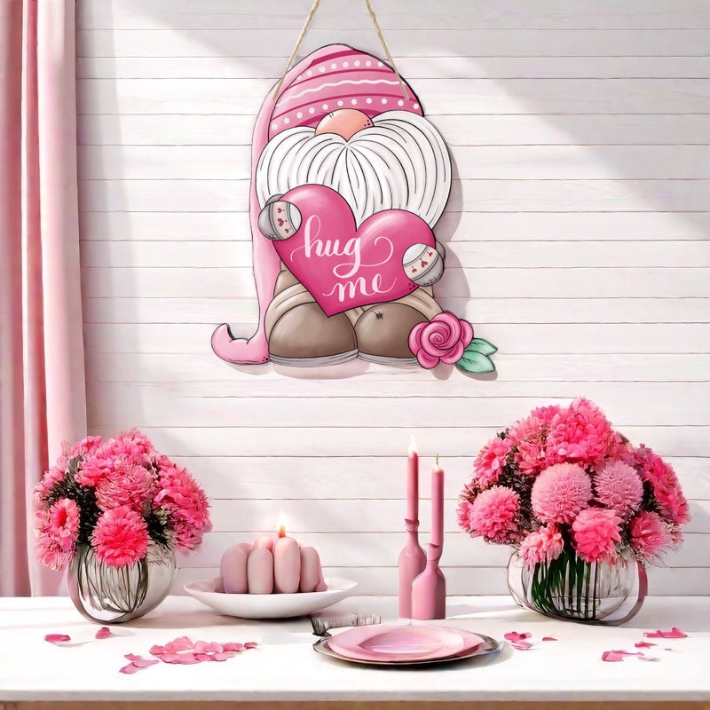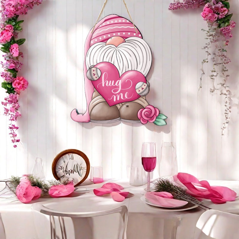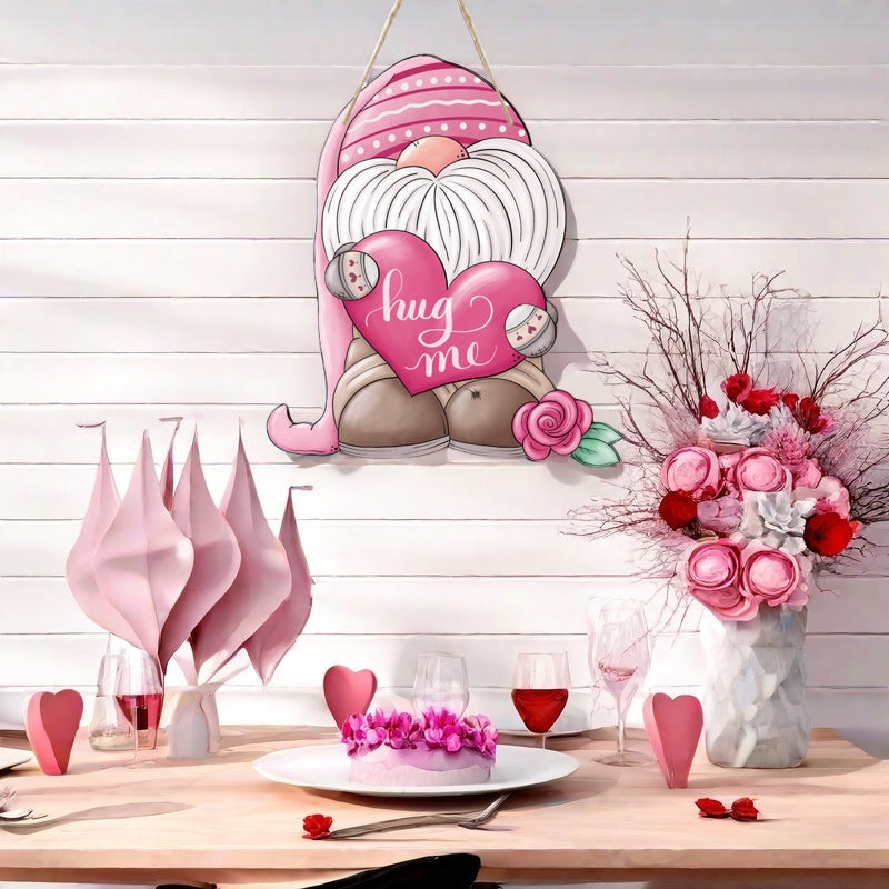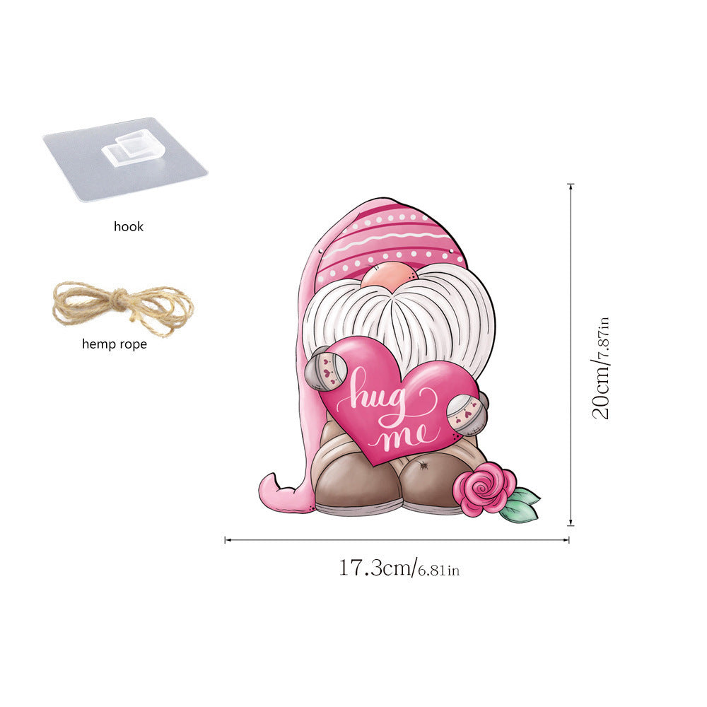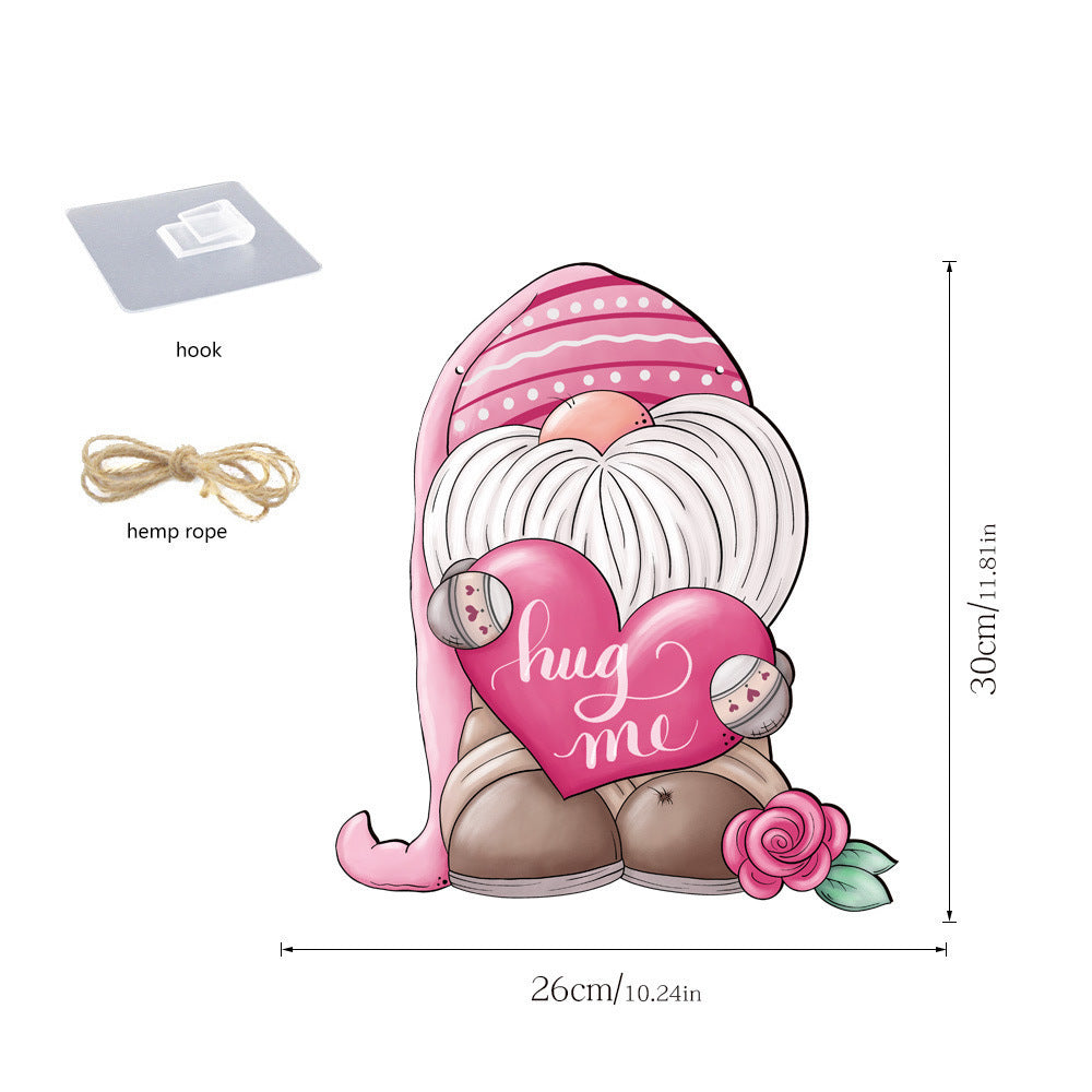 Add a touch of whimsy to your Valentine's Day decor with the Wooden Pink Gnome Sign. Handcrafted from premium wood, this charming door hanger features a cute gnome design and vibrant pink hues. Use it as a DIY wreath accessory or hang it on your door to add a festive touch to your home.